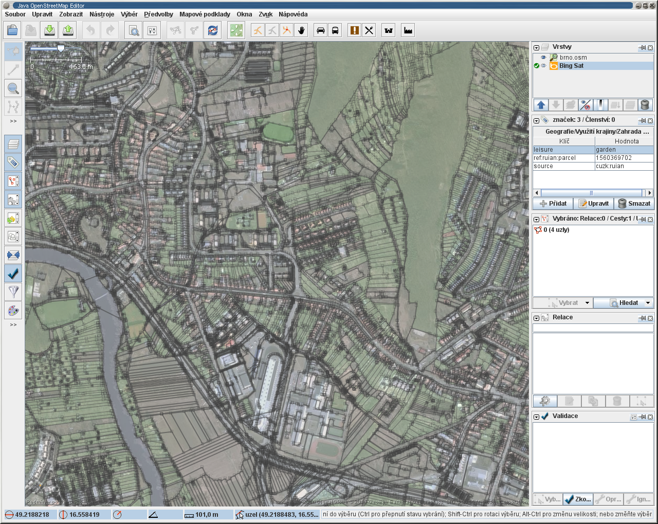 Skriptík nemá jiné ambice než vyzkoušet si natažení parcel do JOSM a